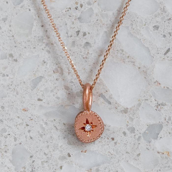 Our Rubble Necklace has been set with April's birthstone, a G/VS brilliant cut white diamond.