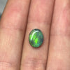 This stunning Lightning Ridge black opal has a dark tone with a green base and flashes with blue and yellow.
